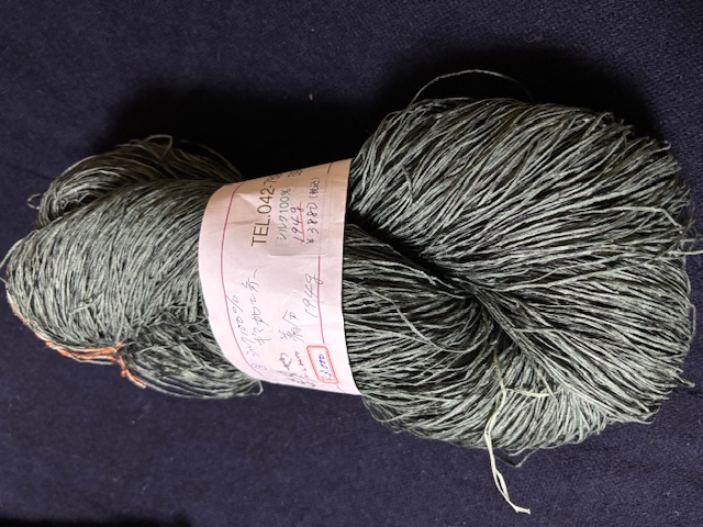 シルク100%擬麻加工糸の濃いめの緑系200g綛