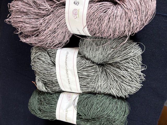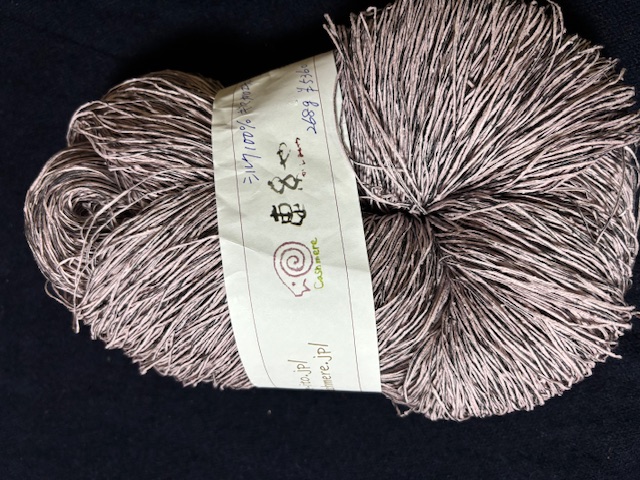 シルク100%擬麻加工糸の淡いピンク系200g綛または玉巻き