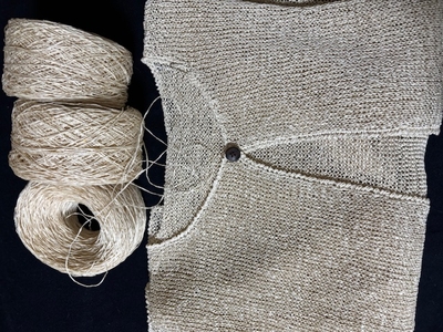 シルク100%擬麻加工糸の生成りのカーディガン